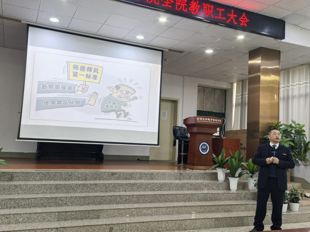 刘稳丰结合典型案例与政策要求,深入剖析开展师德师风建设的重要性与实践路径。他指出,师德师风是教师的立身之本,具有涵盖面广、渗透性强的特点,其要求超越一般职业道德,教师需以“学为人师、行为世范”为准则,在教育教学、学术研究、社会交往中严格自律。并结合教育部通报案例与高校实际,重点阐述分析了言论出格、违规收受钱物、学术不端、师生关系失当等四类违反师德师风的表现。他强调,师德失范后果严重,不仅影响个人事业发展与家庭幸福,还将损害学院声誉,甚至导致行政与党组织负责人被追责。最后希望a片网站