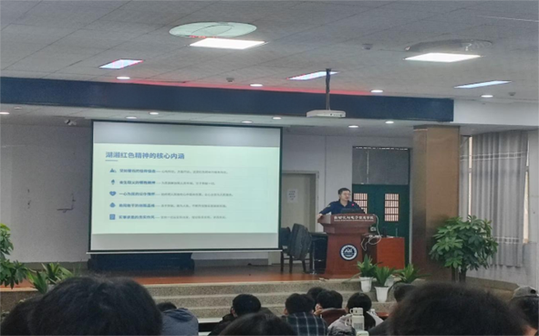 办学历史,阐述了学校的红色根脉,认为这份独有的红色基因,始终是湘大人不忘初心、奋勇前行的强大精神动力。他深入解读湖湘文化“心忧天下、敢为人先、经世致用、实事求是”的精神内核,并从屈原、范仲淹的家国情怀到近代湖湘先贤的忧国忧民之志,从湖南人经世致用、实事求是的务实作风到“吃得苦、霸得蛮、耐得烦、不怕死”的湖湘精神,指出这正是当代工科青年坚守科技报国初心的精神源头。