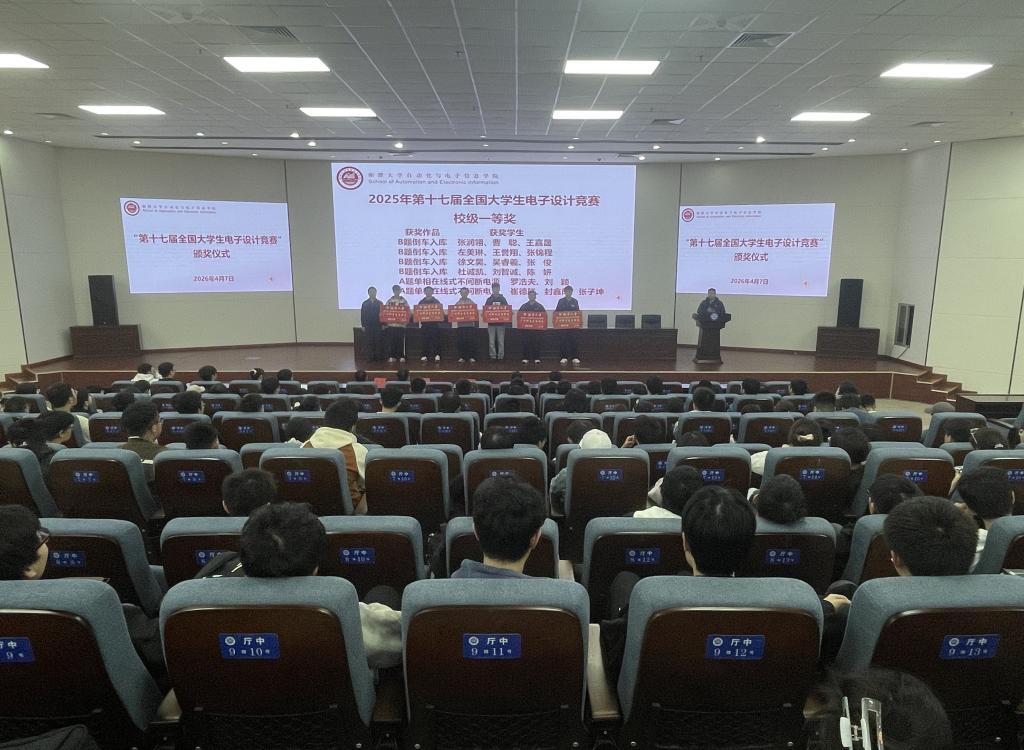 电子设计竞赛颁奖仪式,学院副院长周彦出席仪式并为获奖学生颁奖,获奖团队代表、学院师生代表参加仪式。