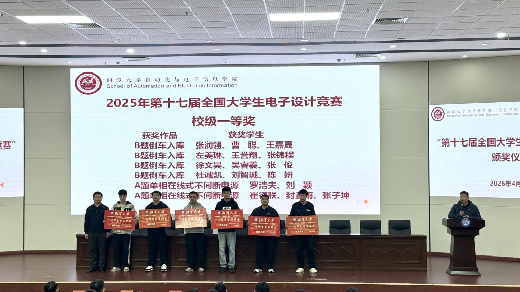 电子设计竞赛自设立以来,吸引了大批学子积极参与,有效锤炼了学子的专业实践能力和创新思维,更成为学子们冲刺大学生电子设计竞赛省赛、国赛的重要练兵场,助力学校学子在湖南省大学生电子设计竞赛和全国大学生电子设计竞赛中斩获优异成绩。本次竞赛中,共有六支队伍获得校级一等奖,六支队伍获得校级二等奖,七支队伍获得校级三等奖;其中,崔德朕/封鑫雨/张子坤组、向锦霖/李文清/汤林峰组、吴文跃/袁桂方/杨行组、李灏/徐郭昂/范凯智组成功斩获2025年湖南省大学生电子设计竞赛奖项,崔德朕/封鑫雨/张子坤组更凭借扎实的专业能力和出色的创新表现,荣获2025年全国大学生电子设计竞赛二等奖,充分彰显了“邦普杯”a片网站