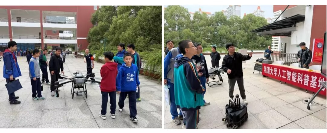 科普基地带来了两个前沿设备:“安巡卫士”—基于多模态友好交互的楼道违规巡检机器人、基于北斗视觉增强融合定位系统的干冰绝缘子除污无人机进行现场展示与互动,为千余名中学生带来了一场生动的人工智能启蒙课,在青春校园里播撒科技的种子。