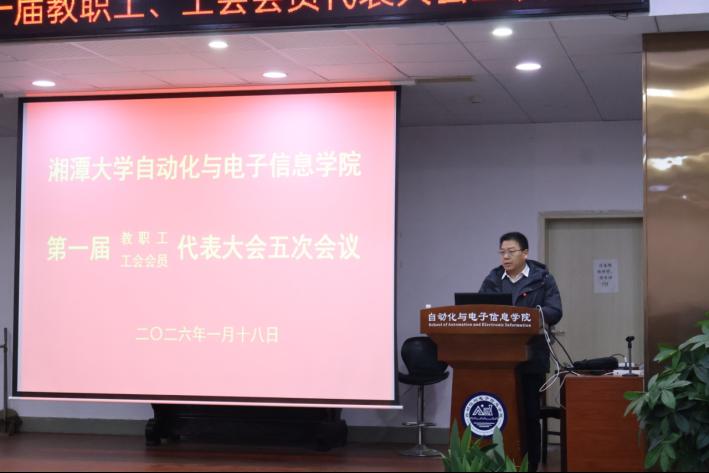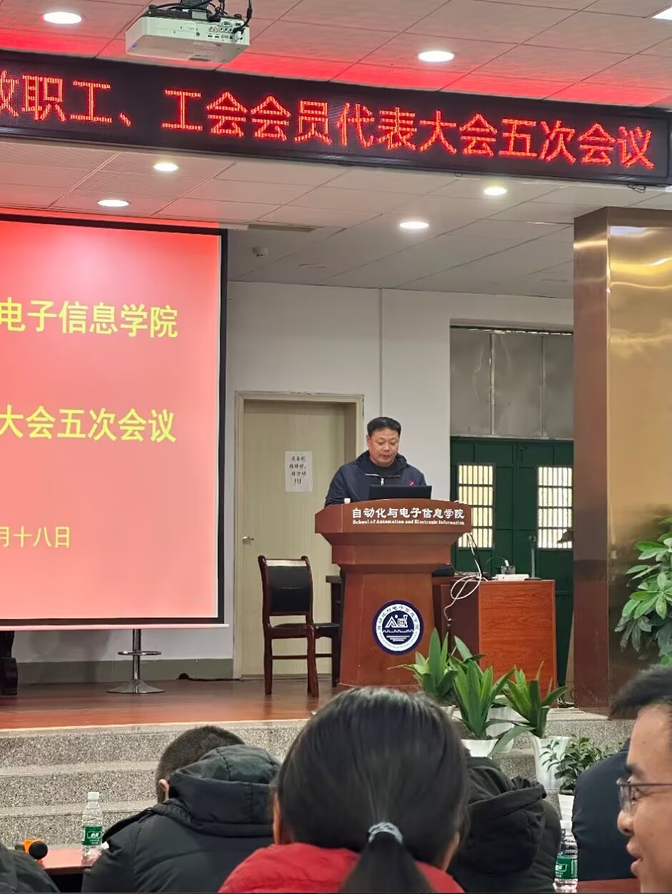 第一届教职工、工会会员代表第五次会议在工科楼阶梯教室隆重召开。学院领导班子成员、教职工代表等参加会议。
